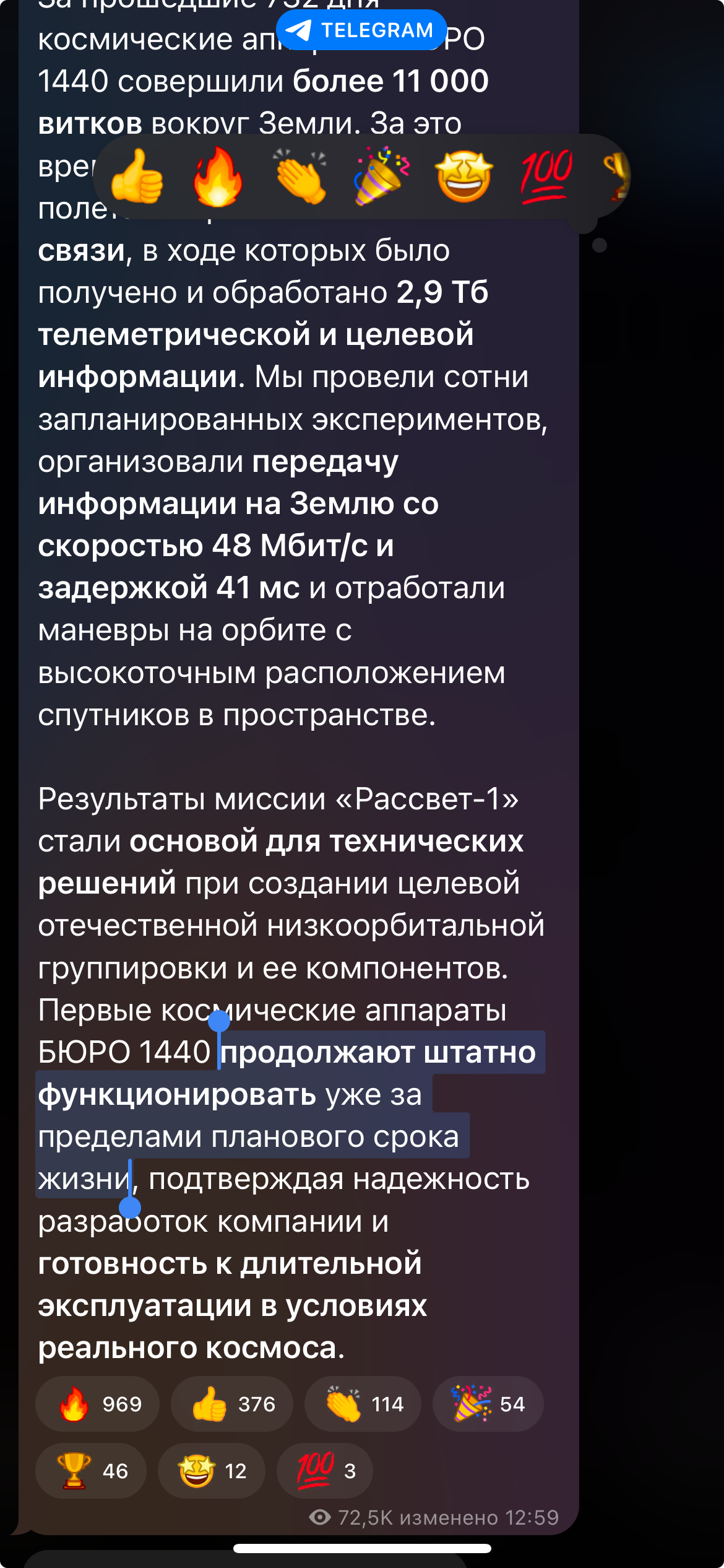 1.5 года на орбите, конечно, смотрятся куда внушительнее трёх месяцев жизненного цикла у старлинка, но всё ещё остаются вопросы к возможностям наращивания группировки спутников