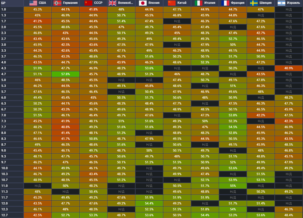 Ну, по статистике хороший % побед у наций, у которых есть достойный ударный самолет , плюс есть факт - пилот умнее танкиста и этот факт дает буст % побед за счет лучших игроков.