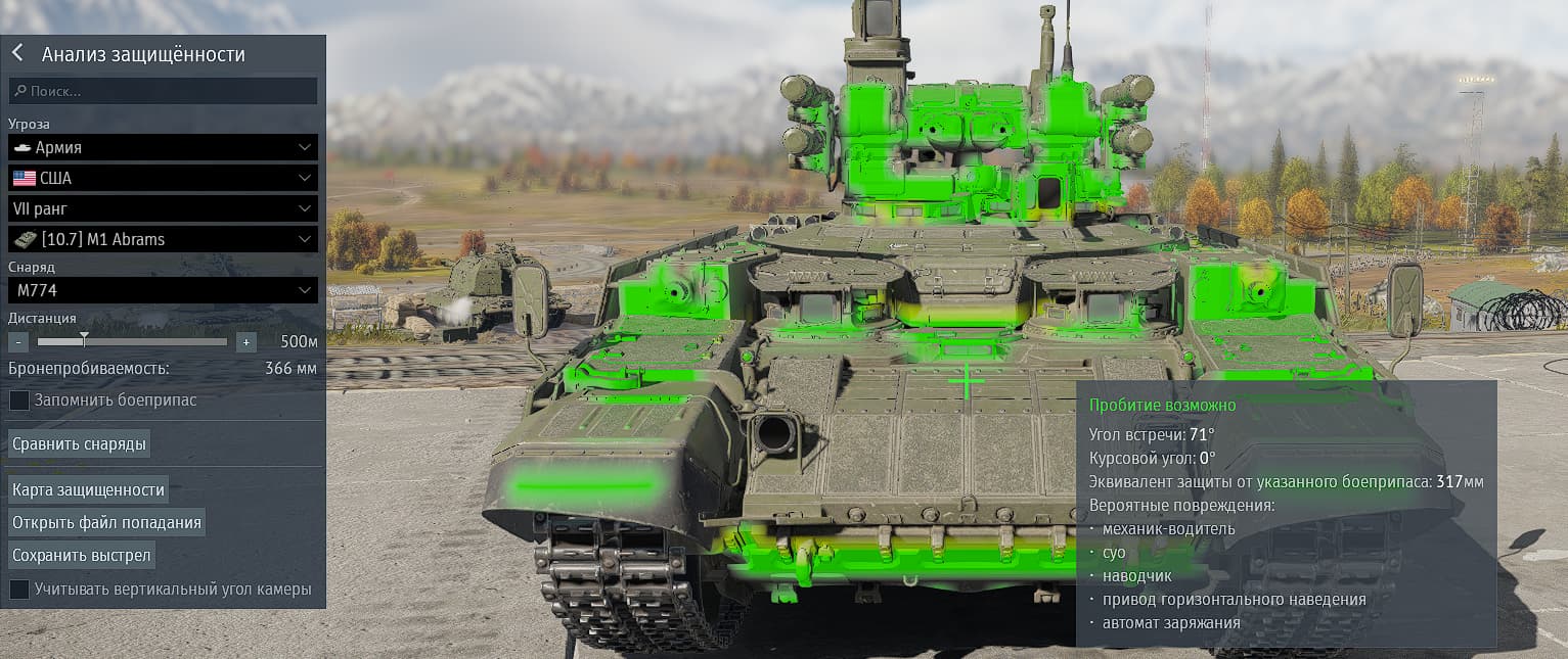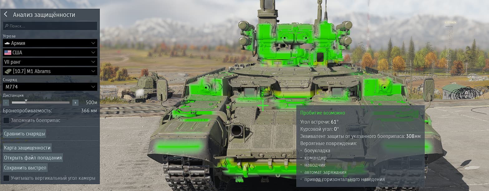 А теперь будь добр покажи с чего ты анализ защищённости делал и пробовал ли тыкать сам в броню , потому что зелёные зоны не везде окрашиваются где нужно .