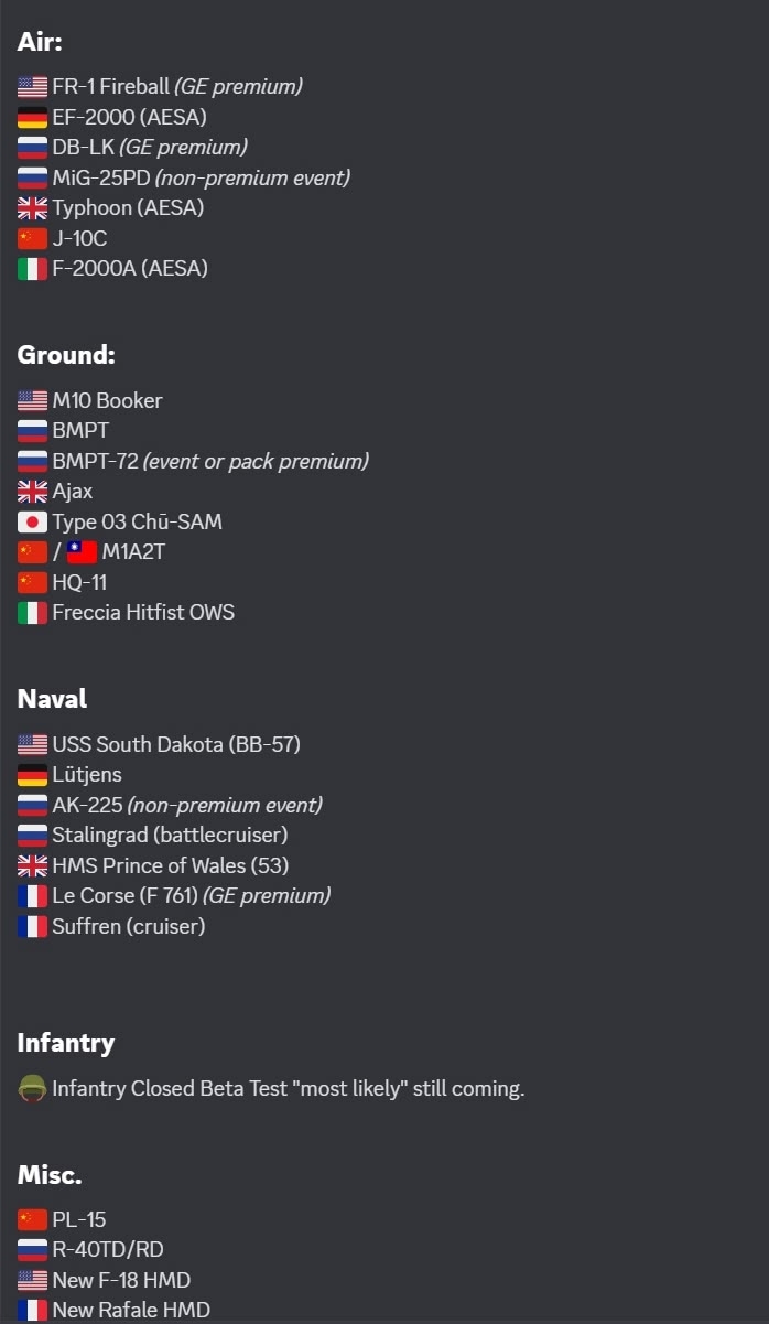 Вот и всё, список подтверждён. Новые зенитки Японии есть, какой-то очень странный экспериментальный бобёр тоже есть, катер для СССР за ивент в наличии