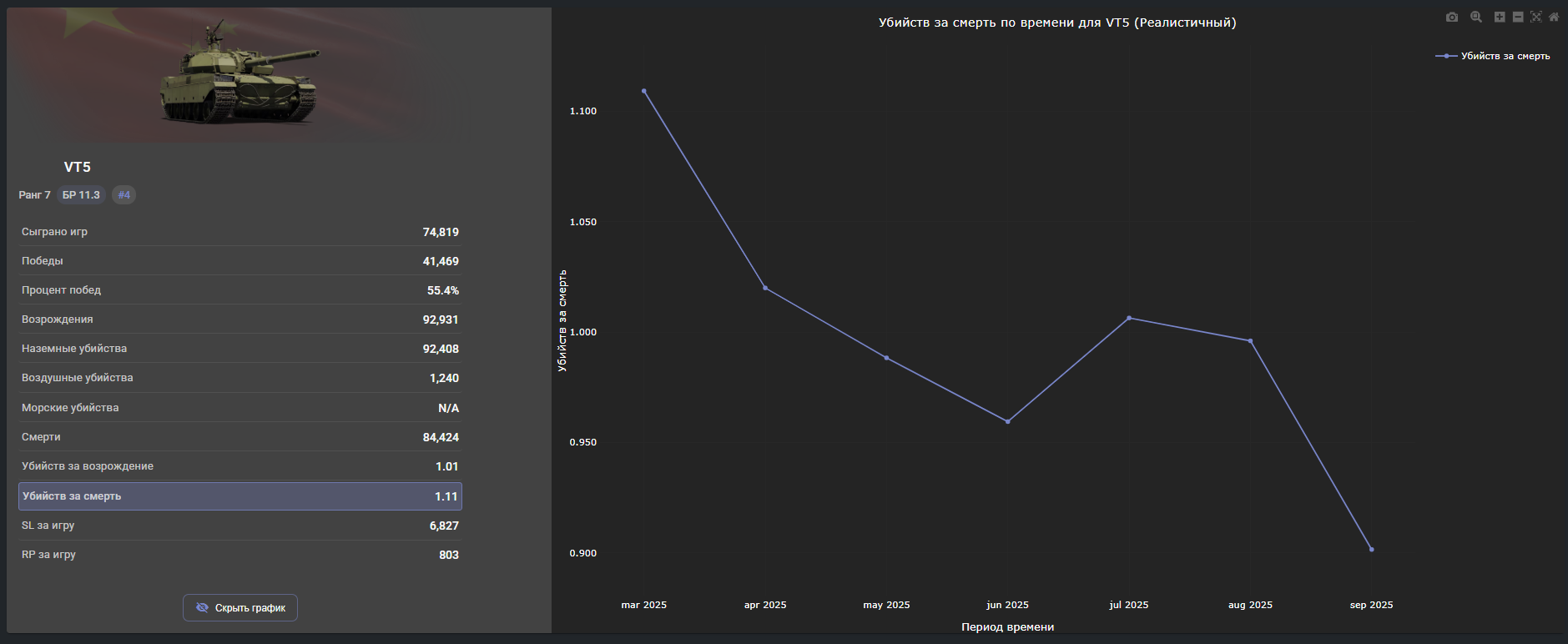 Расскажешь как и когда полковой VT5 успел набить статистику на повышение БРа не пробыв с момента релиза на своём изначальном БРе и месяца?