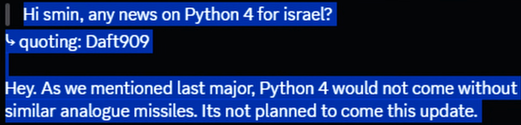 питон 4 тоже должен быть в игре, но мы живём в сосаити…