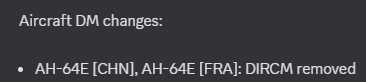 - AH-64E [CHN], AH-64E [FRA], AH-64E [JPN]: hidden unless the player owns it (all platforms) → shown (all platforms)