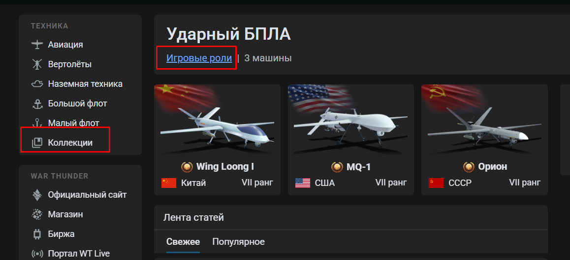 Коллекции — Игровые роли — Ударный БПЛА