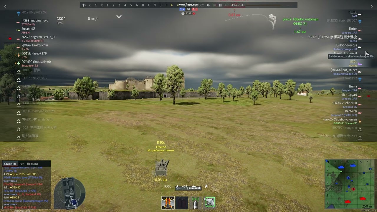 Оцелот с ногами против китайского аналога С-13ОФ на расстоянии 800м.