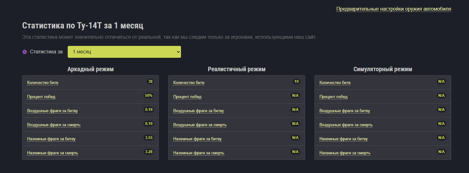 я щас без гугления могу сказать, что если зайти на тандер скил и посотреть на стату ту14т там будет либо 0 боев за месяц, либо пару десятков, потому что я на нем перестал летать, а судя по стате кроме меня его вообще никто не катает) интересно почему)