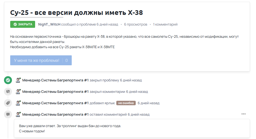 Я нашёл ошибку, зарепортил её, ошибка игнорируется, за что бан?