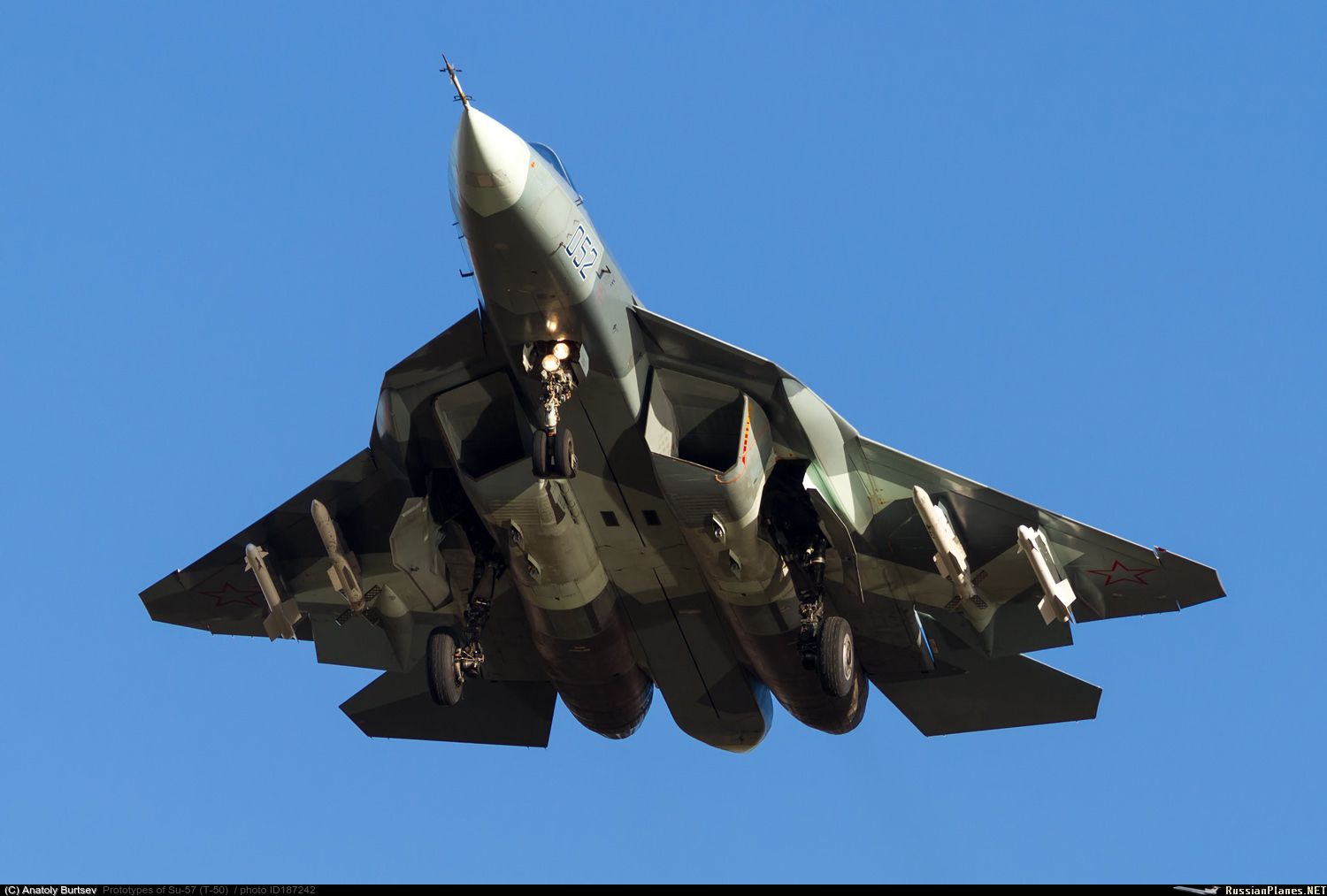 Су-57 - многофункциональный истребитель 5-го поколения. Серийное производство началось 29 июля 2019 года.