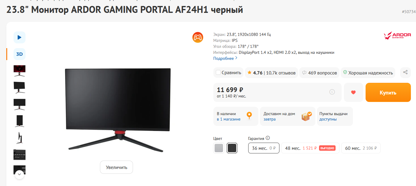 вот кстати да, подскажите по выбору монитора? бюджет около 10к, 15к прям потолок, лучше если будет за 10, с приятной цветопередачей и контрастом и вменяемым отлкиком, герц так 120 хватит (один фиг я больше того на своей 1080 не вижу)