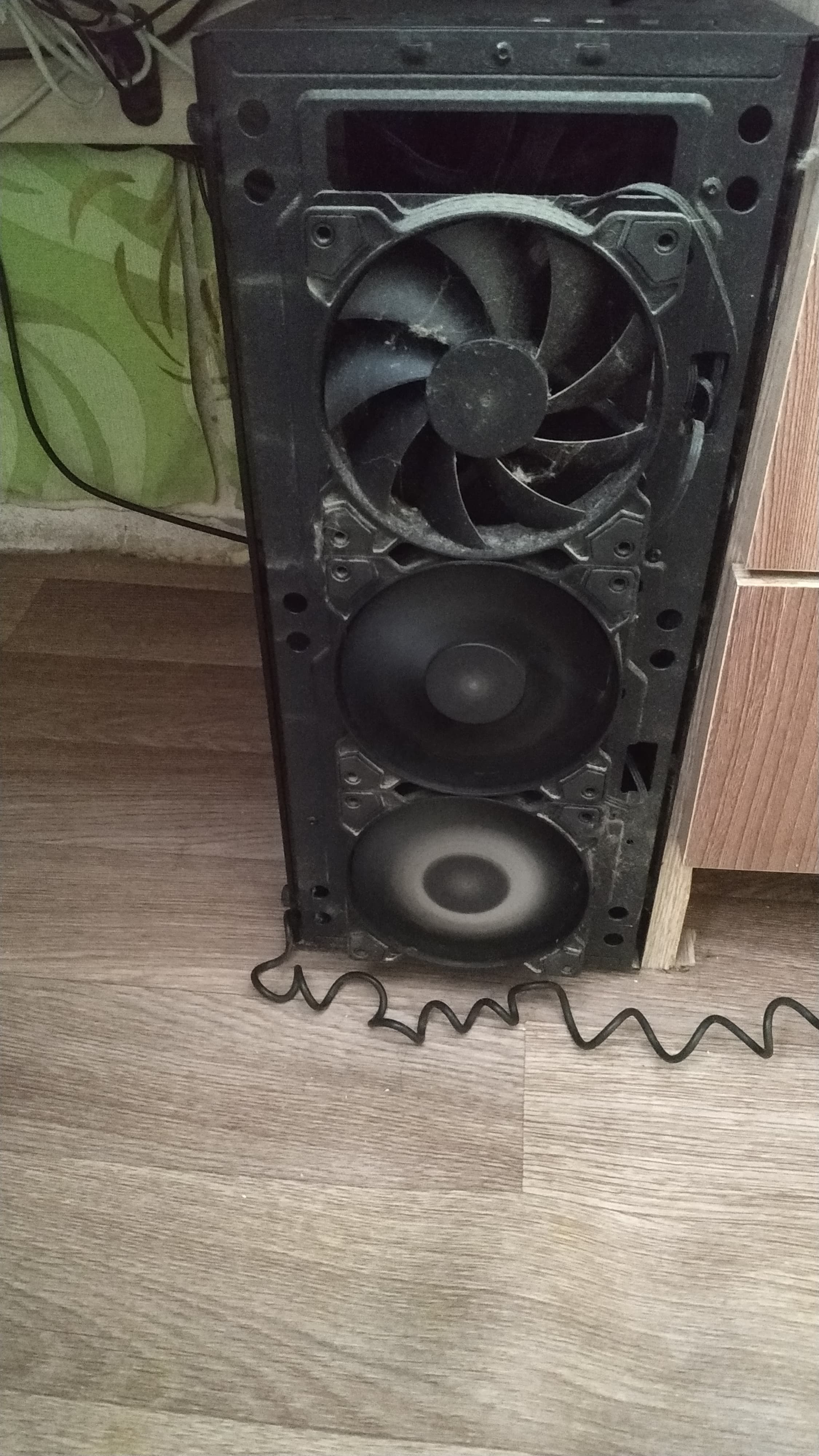 Перестала вертеться фронтальная вертушка в блоке кулеров. Причём мотор греется, но эффект нулевой; две других нормально.