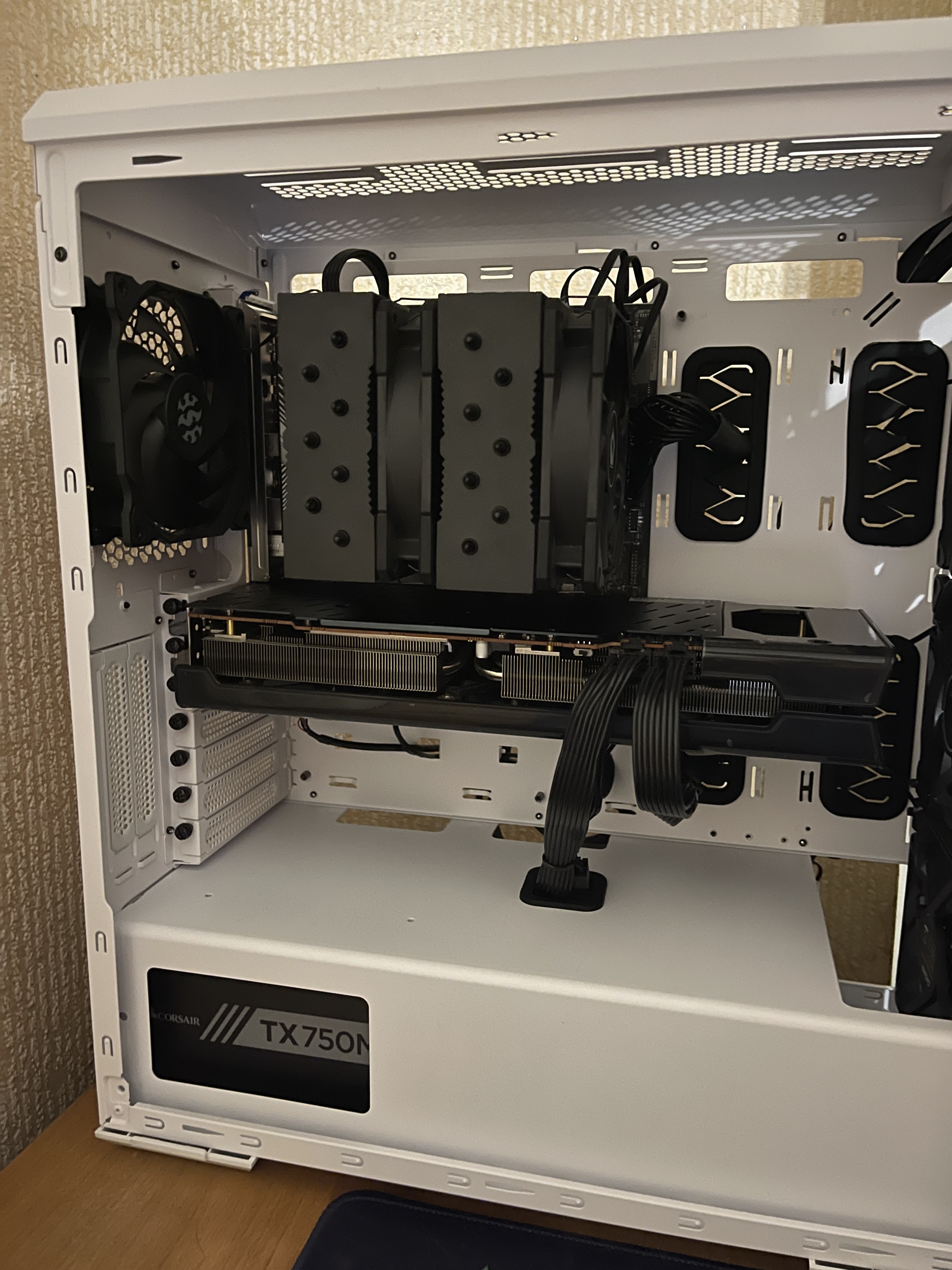 Вверх не влезло( Только вперёд и зазор между видеокартой и кульками в пару мм получился
