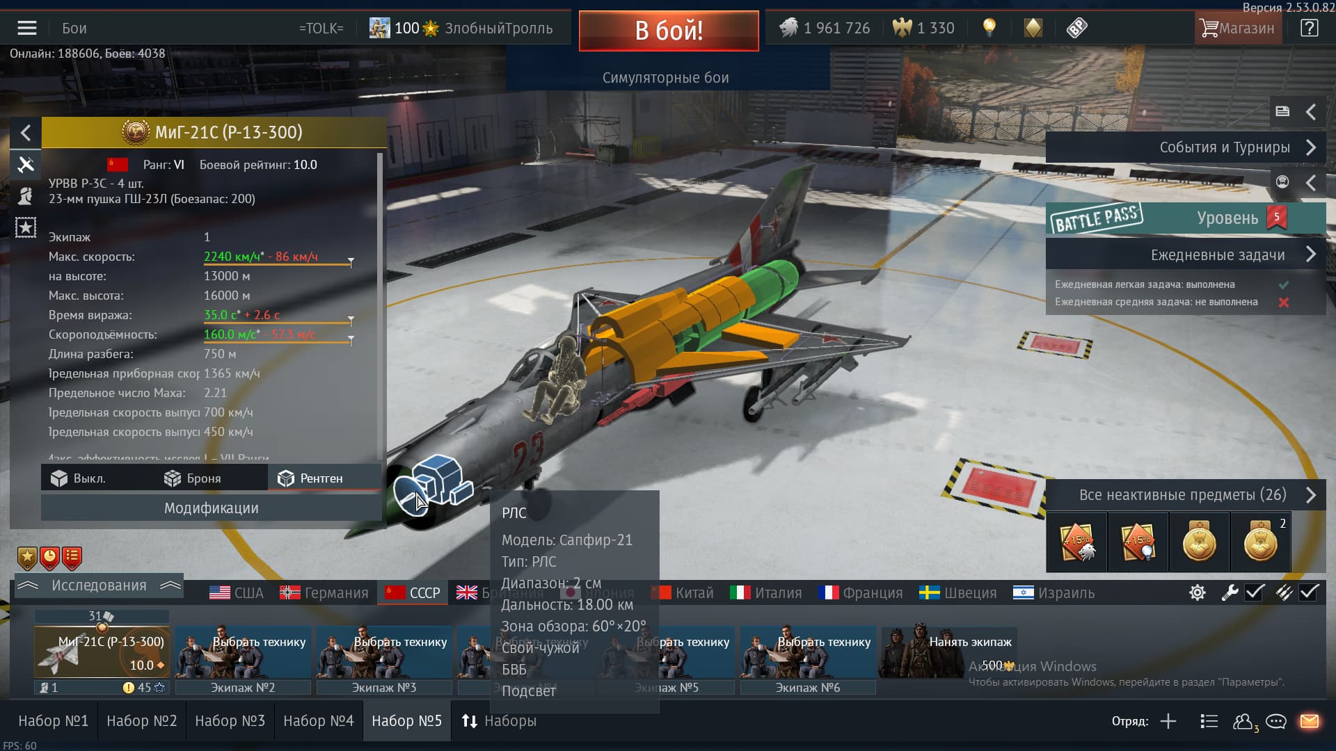 В характеристиках РЛС МиГ-21 (Р-13-300) указана система “свой-чужой”. Но по факту она не работает. Это только у меня или у всех так?