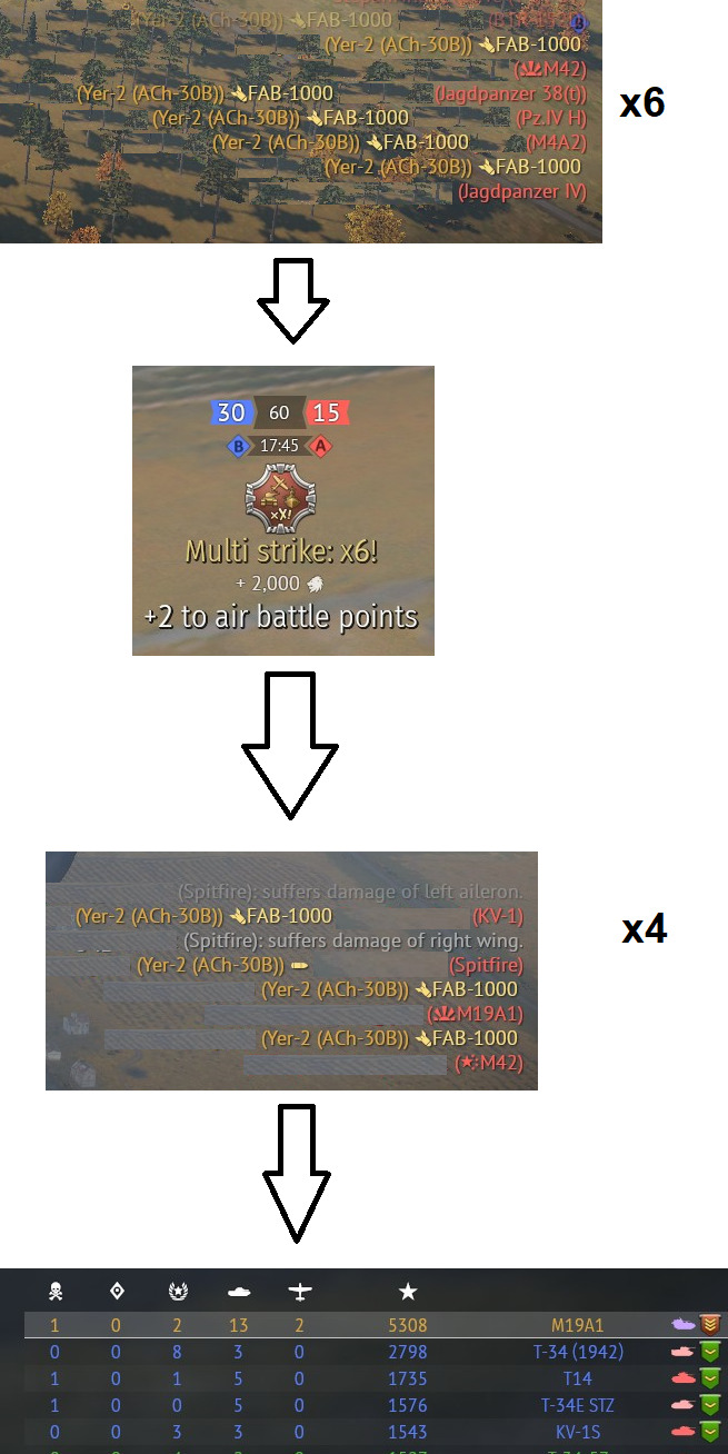 На высоких БР это превращается в ад, так как лётка спавнится → задирает нос вверх → истерично клацает ЛТЦ/ДО + пробел, когда аркадный бомберский прицел навёлся на зону, где больше всего точек противника → улетает по низам в безопаску/сливается от вражеских истребителей.