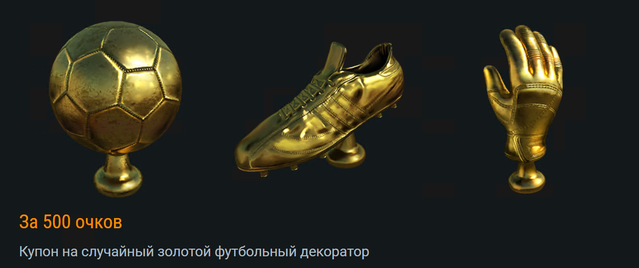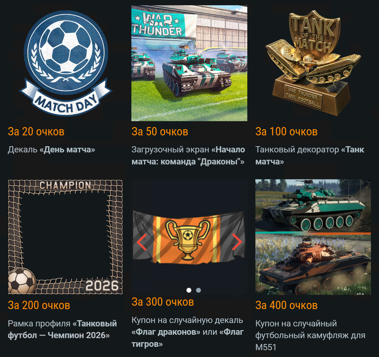 За каждый гол, голевую передачу или сейв вы будете получать очки прогресса достижений. Награды акции выдаются за определённое количество очков, полученных во время матчей в событиях «Танковый футбол».