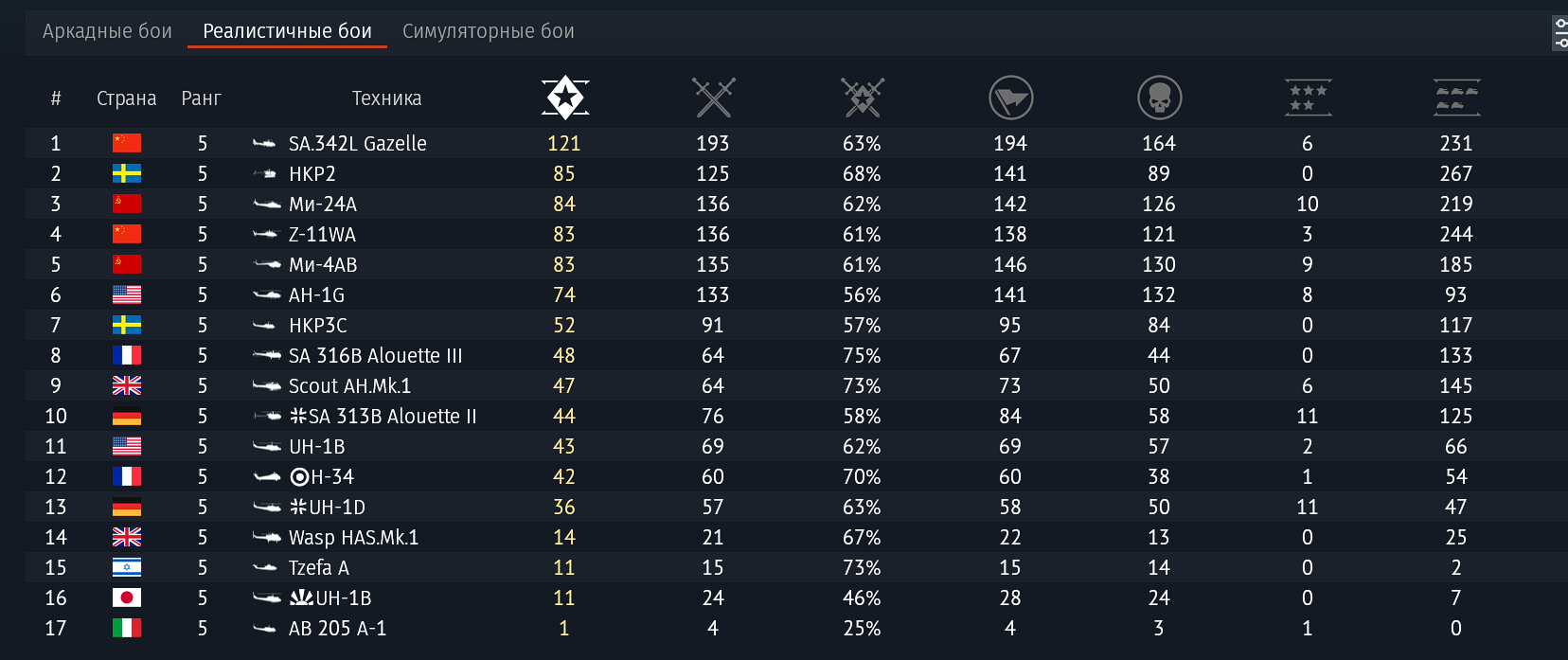 Мало того, у шведских вертолетов на этих рангах полностью отсутствует выбор вооружения. Игрок поставлен перед нелепым выбором: либо брать ПТУР, либо пулемет калибра 12.7. У нации банально нет даже обычных неуправляемых ракет для агрессивного геймплея или УРВВ для самообороны от авиации. В то время как конкуренты (например, Китай на Z-19 или Италия на Mangusta) уже на 10.0 имеют отличную оптику, автосопровождение и дальнобойные ракеты, шведский пилот играет на технологиях 60-х годов против ОБТ и ПВО 90-х.
