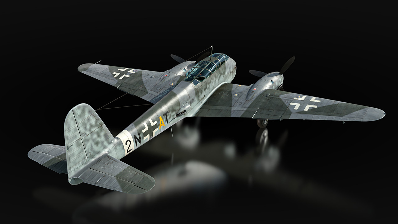 Мы планируем представить в игре сразу несколько модификаций Me 210. Базовая ранняя версия A-1 появится в ветке Германии, самолёт получит курсовую батарею из пары 20-мм пушек и пулемётов, а также бомбовое вооружение — в бомболюке размещаются осколочно-фугасные бомбы в калибрах от 50 до 500 кг или одна бронебойная на 1000 кг! За оборону отвечают дистанционно управляемые турели с пулемётами MG 131.