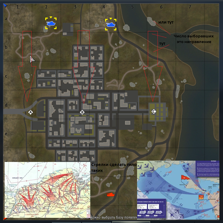 Визуализация: На экране выбора точки появления (как на скриншоте) для каждого доступного направления (фланга) отображается стрелка.