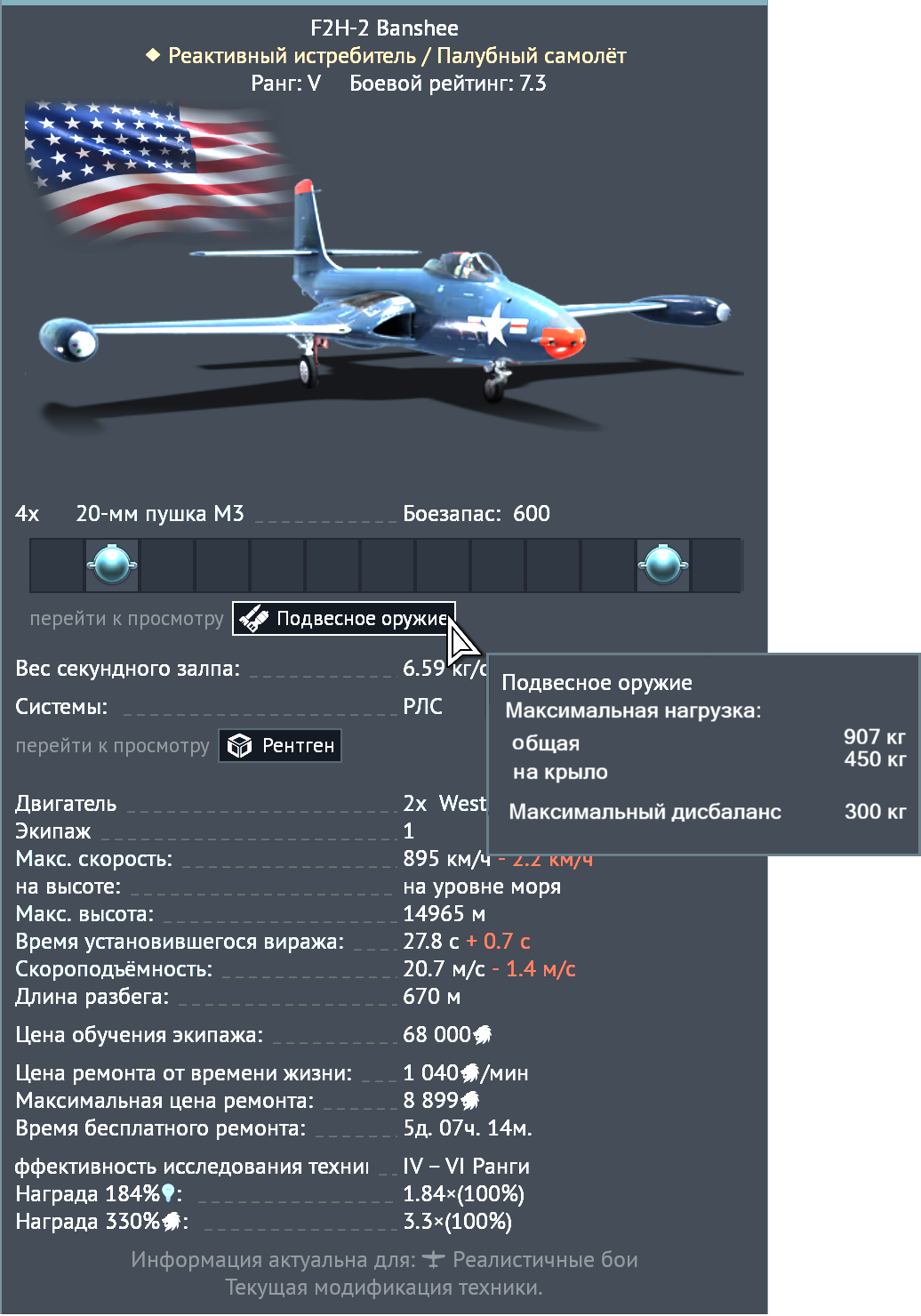 - добавить прямо в карточку максимальный вес подвесного вооружения, если его можно подвесить - максимальную общую нагрузку, на крыло и дисбаланс, скрыть это в описание при наведении курсора на пункт “Подвесное оружие”