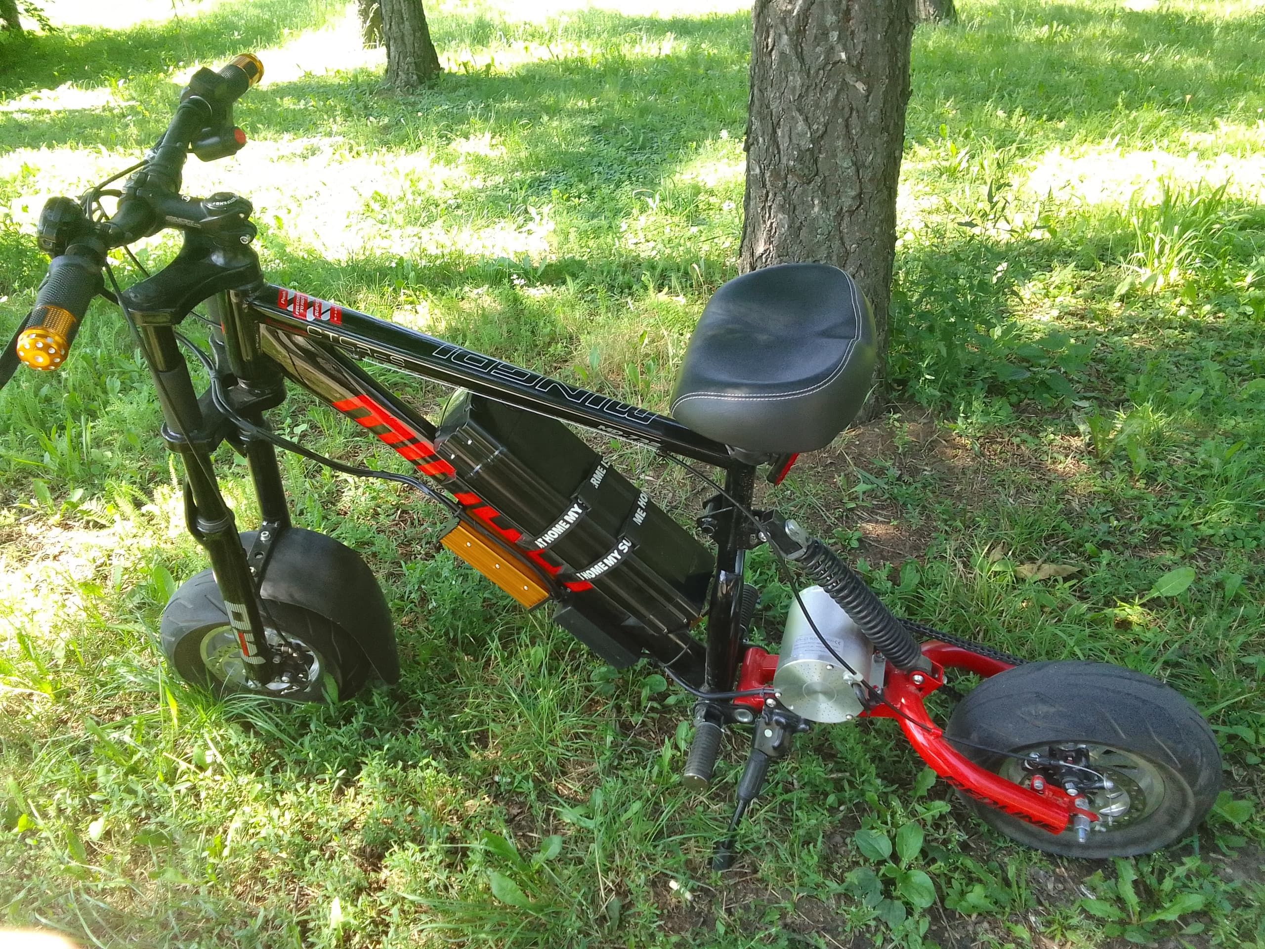 С другой стороны, когда у тебя на задней оси такой вес, - тормозить тапками в пол приятно, а вот “трюки” делать невозможно. Ибо вес только мотора около 7,5 кг…