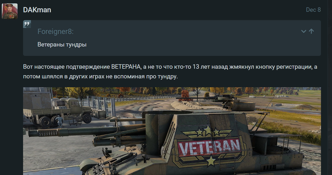 И пофигу, что ветераном можно назвать человека в игре в разном контексте - и в каком именно было указано в этой теме в самом начале самим топикстартером. Но твое достижение должны видеть, ценность его должны осознавать - так что нужно всем сказать, что такое тру-ветеран, ага.