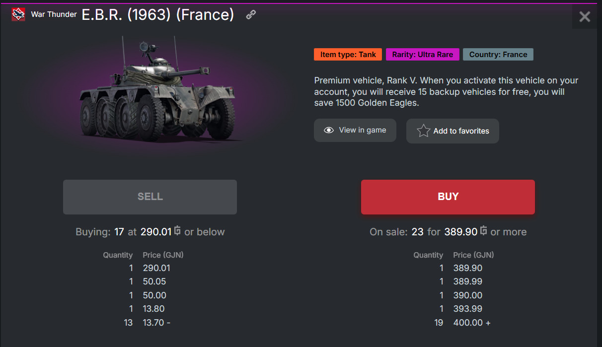 У меня есть ebr 1954 года, он аукционный, но его нет на бирже. Он настолько редкий, что нет предложения? И что более интересно, сколько он может стоить в долларах. Кто шарит пожалуйста подскажите
