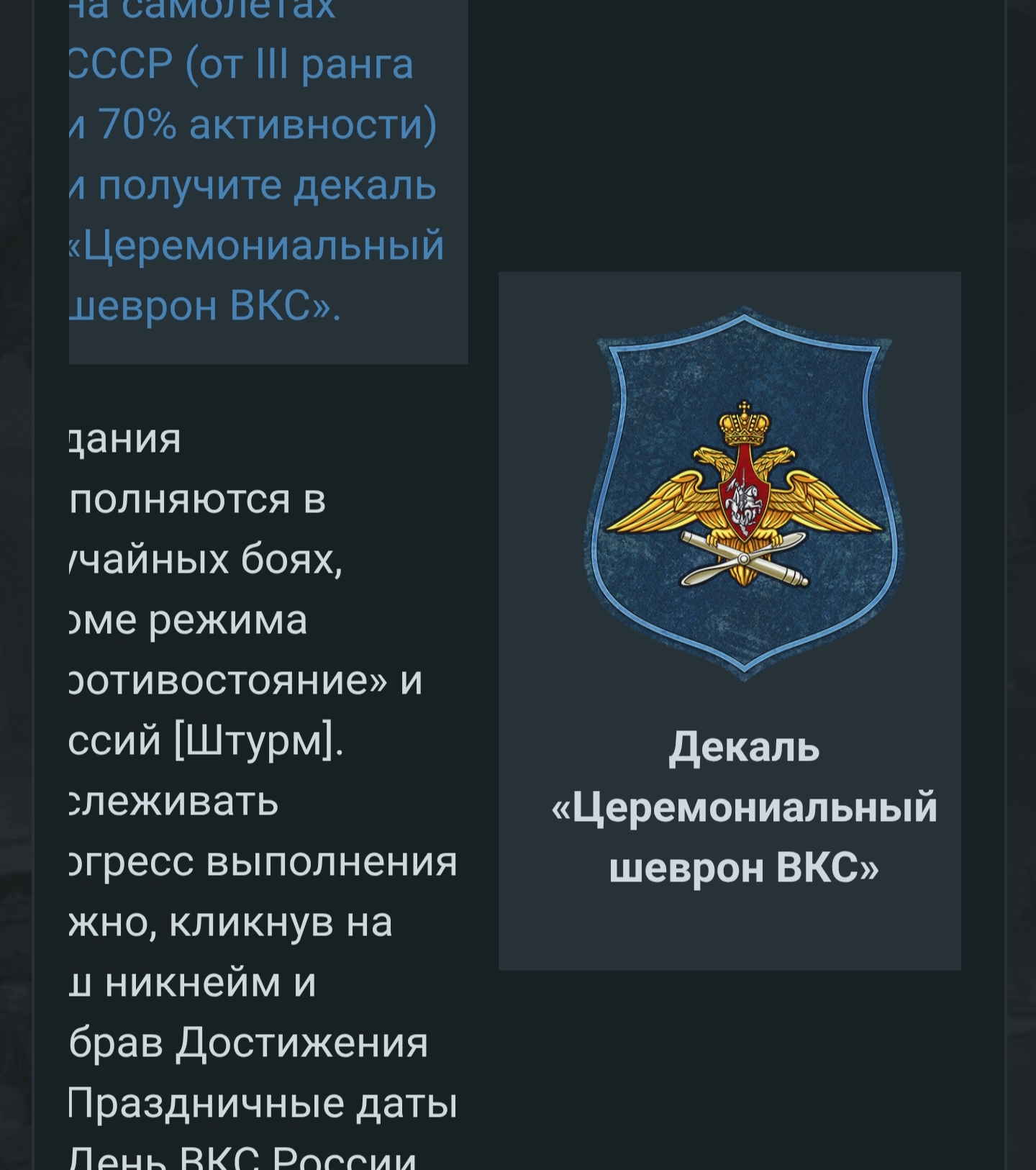 Возможно эту декаль будут выдавать на следующую праздничную дату - день ВКС России, 4 октября.