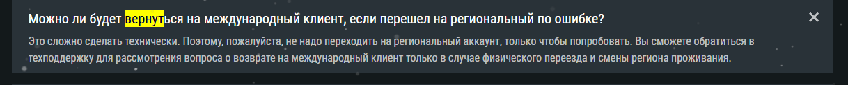 Это сложно сделать технически. Поэтому, пожалуйста, не надо переходить на региональный аккаунт, только чтобы попробовать. Вы сможете обратиться в техподдержку для рассмотрения вопроса о возврате на международный клиент только в случае физического переезда и смены региона проживания.