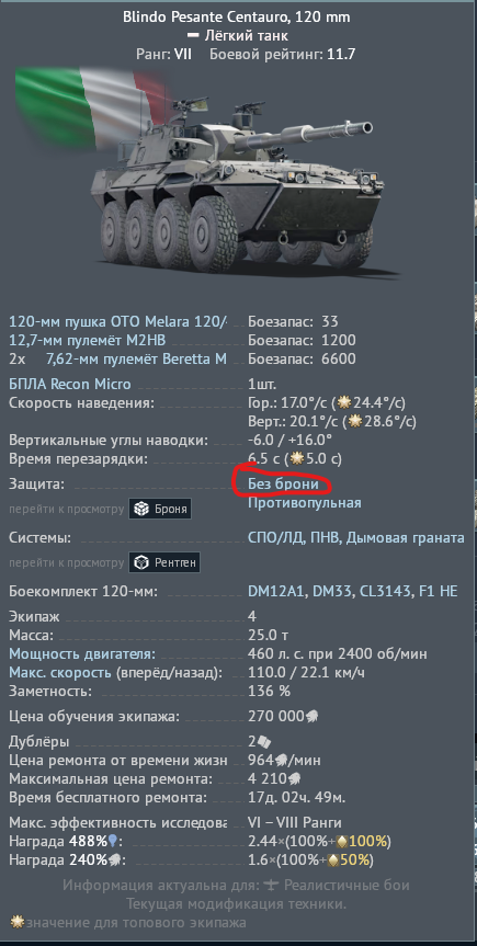 Как работает описание защиты? кентавр 2 и 120 пишется что нету брони, а на VRCC написано cтальная броня.