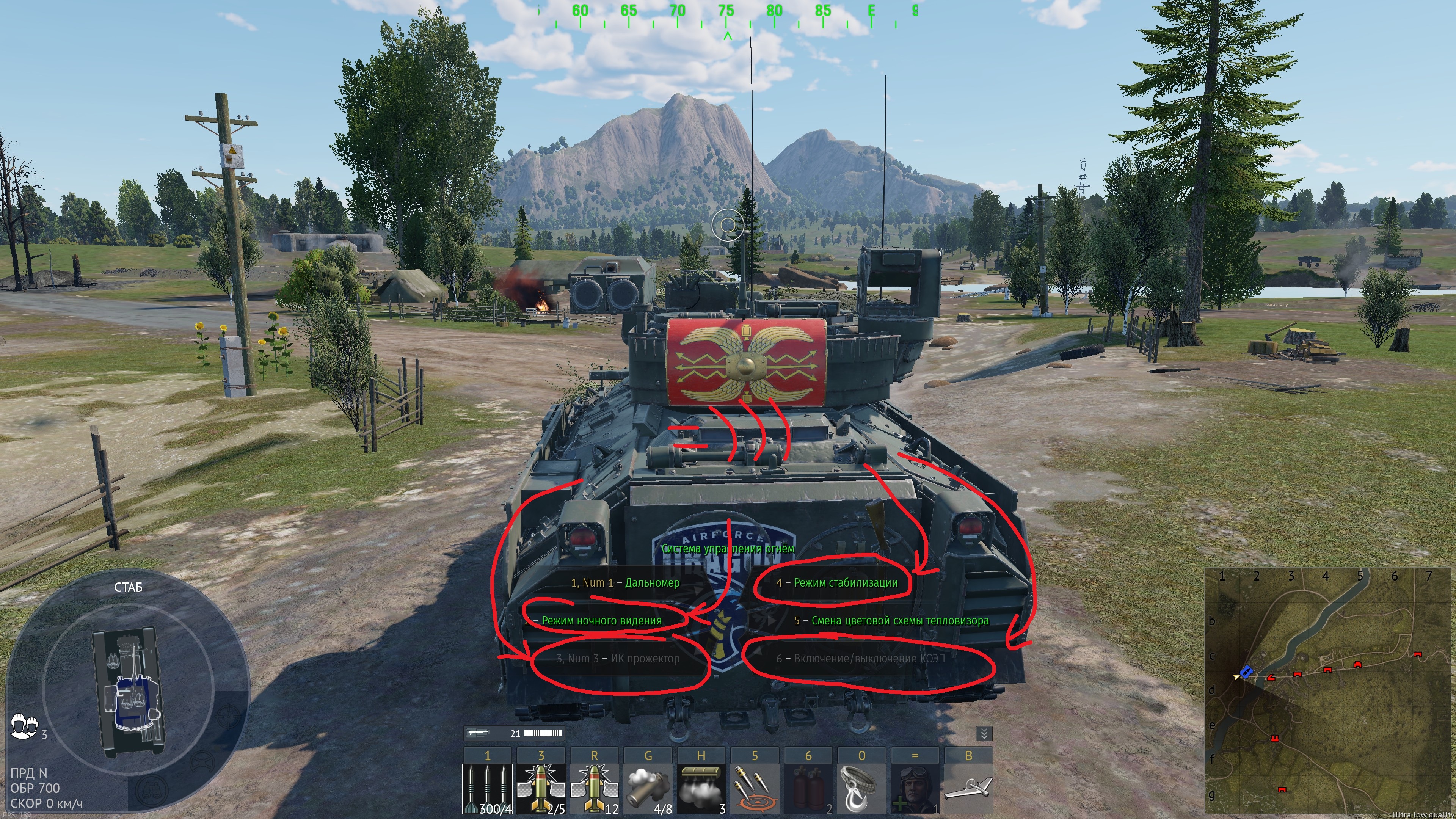 В то же время КАЗ реагирует на преимущественно опасные угрозы, так что выключать его не надо. Зато перезарядку каза ускорить до перезарядки дымов стоило бы, но тогда надо по аналогии с дымами сделать ДМ для самих противозарядов
