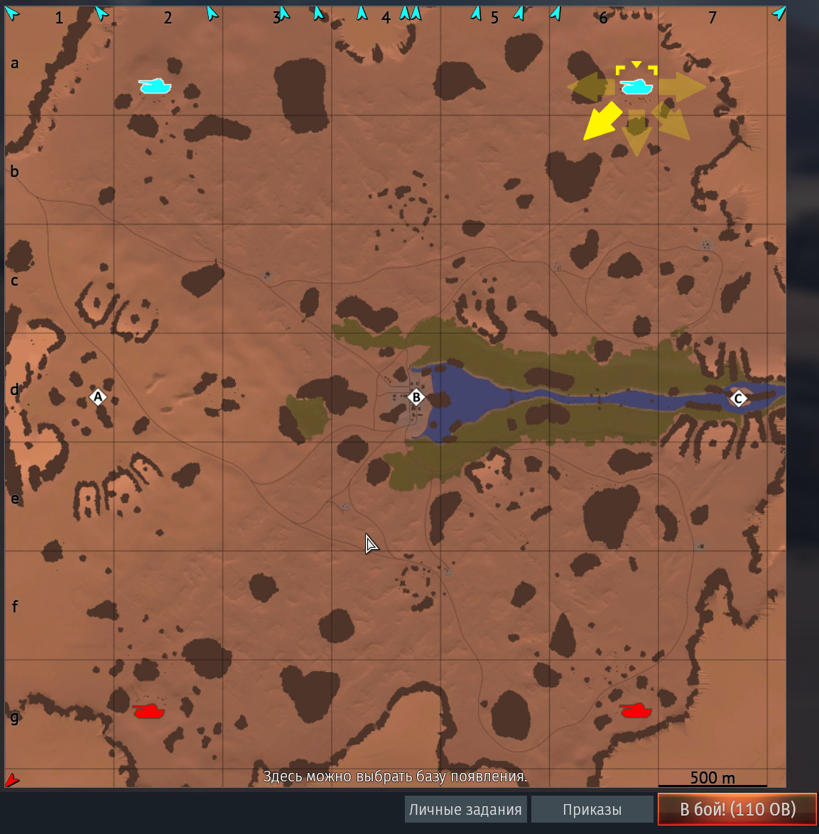 Если выбранных направлений не много, то пусть танки появляются в линию. Если направлений выбрано много, то пусть техника выстраивается в дугу, как это реализовано с подвесами. Ну а если игрок направление не выбрал, то пусть просто появляется в центре.