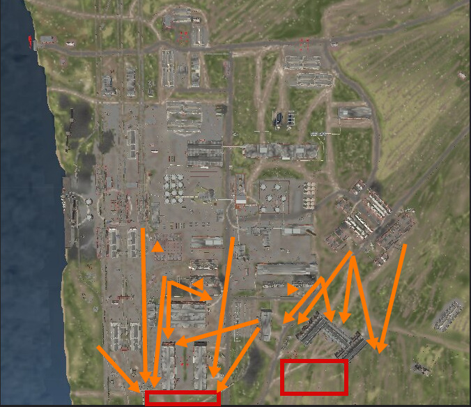 Ну или положим - заброшенный завод. Сам респ прикрыт то домиками, окей, зареспиться тебе дадут. А вот выехать с респа некуда, ибо все проезды перекрываются буквально с центра карты)