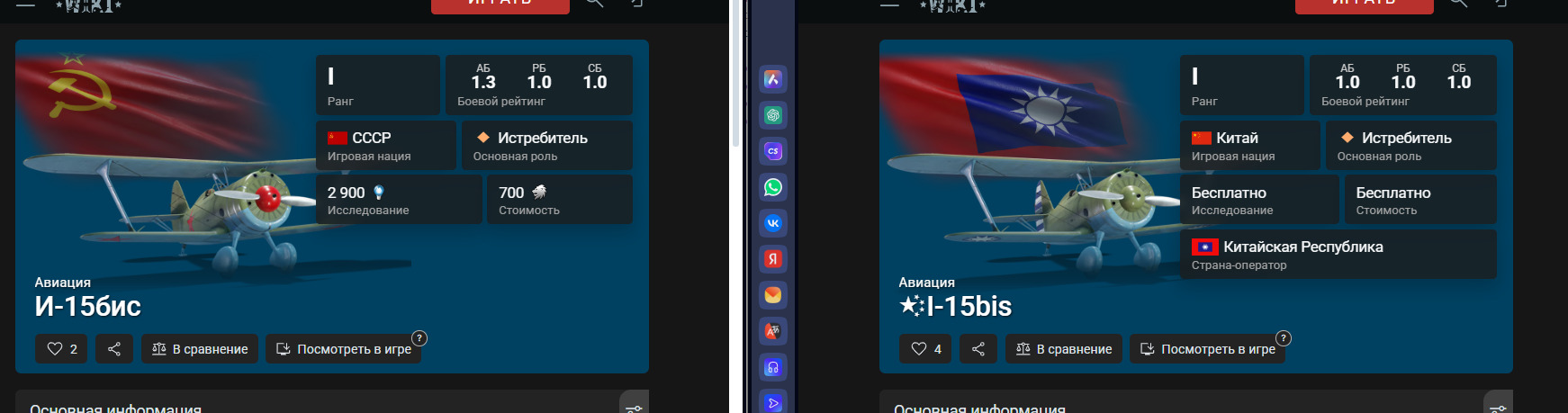 Или например, И-15 бис. В ветке Кмтая он внезапно имеет БР 1.0, находясь вж в подкатегории с Чайкой И-153. В советсеой ветке у него БР 1.3. и посему-то он НЕтв подкатегории с И-153