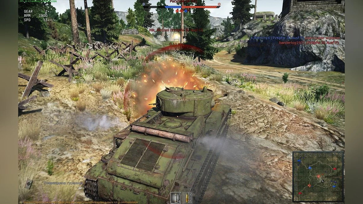 Вся команда взяла тяжёлые машины - КТ, Фердинанды, Первых тигров, итд. Пантер не было, РУ251 был один и он умер первым. А кинуло нас против СССР на старую (более крупную) версию Фульды. В итоге 34ки тупо захватили точки, и мы до них не успели доехать до конца боя. Одна руша пыталась сражаться но пала смертью храбрых)