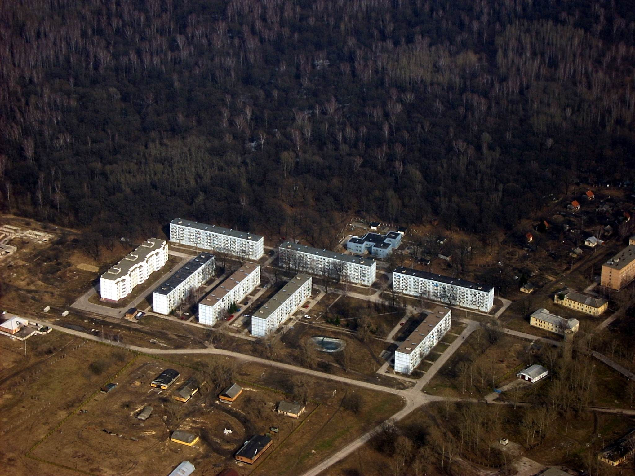 А вот что в упор к военному городу делает обычная такая деревня, причем где то в низине