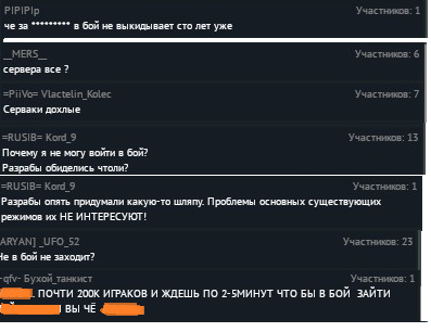 Не подскажете, какие-либо действия по починке игровых чатов и уменьшению количества проблем со входом в бой предпринимаются? Много жалоб на долгий вход в бои(в том числе и обычные, например, танковые АБ и РБ).