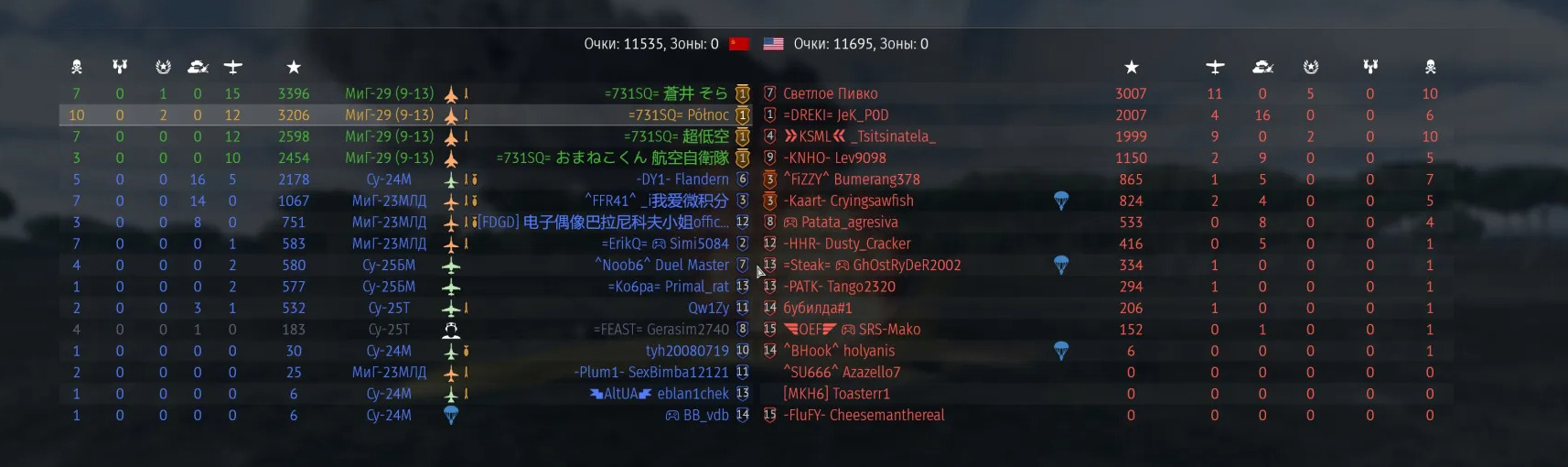 ну да-да, як и миг несут 2 ЭР против ( да у яка можно подвесить Р, но смысла от них не много) 4/6 факуров/фениксов + те же самые 2 Р на жирафе, оч справедливо, рашн биас во всей красе) зато су-27с мы блокнем, а f-15a нет, думаю не надо объяснять какой это сюр
