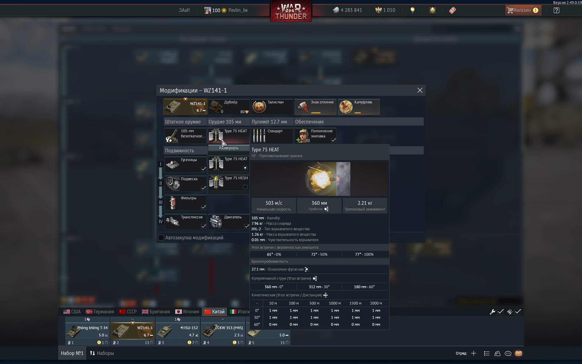 Но при этом, нововведенный китайский WZ141-1 (БР 6.7, аж на 1.0 ниже) отсутствует…