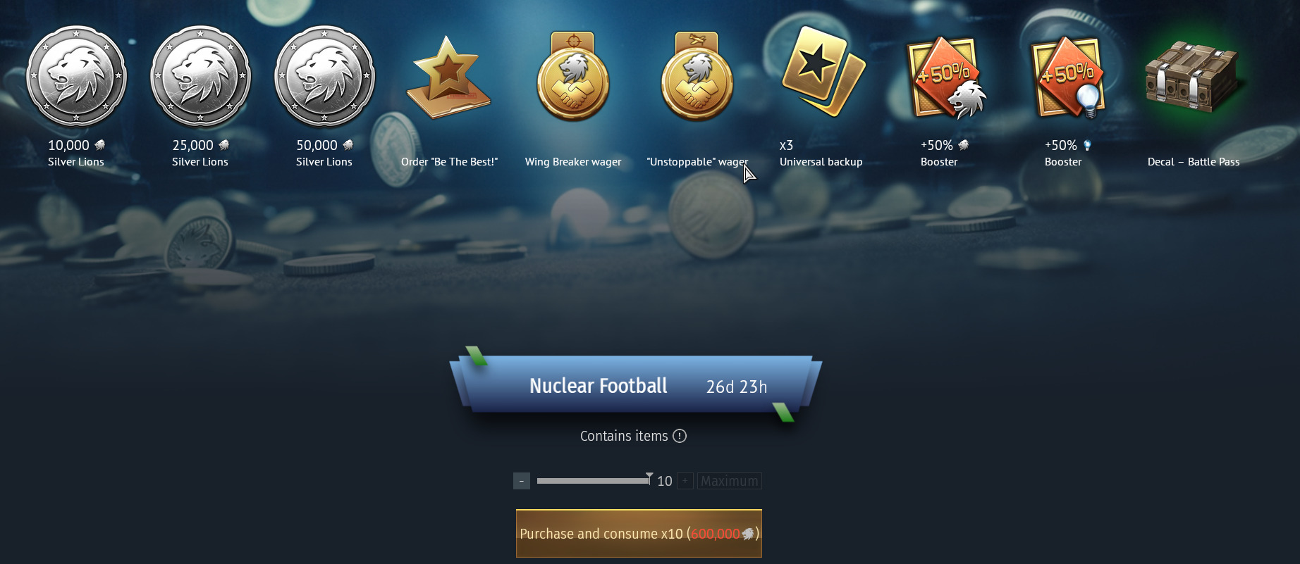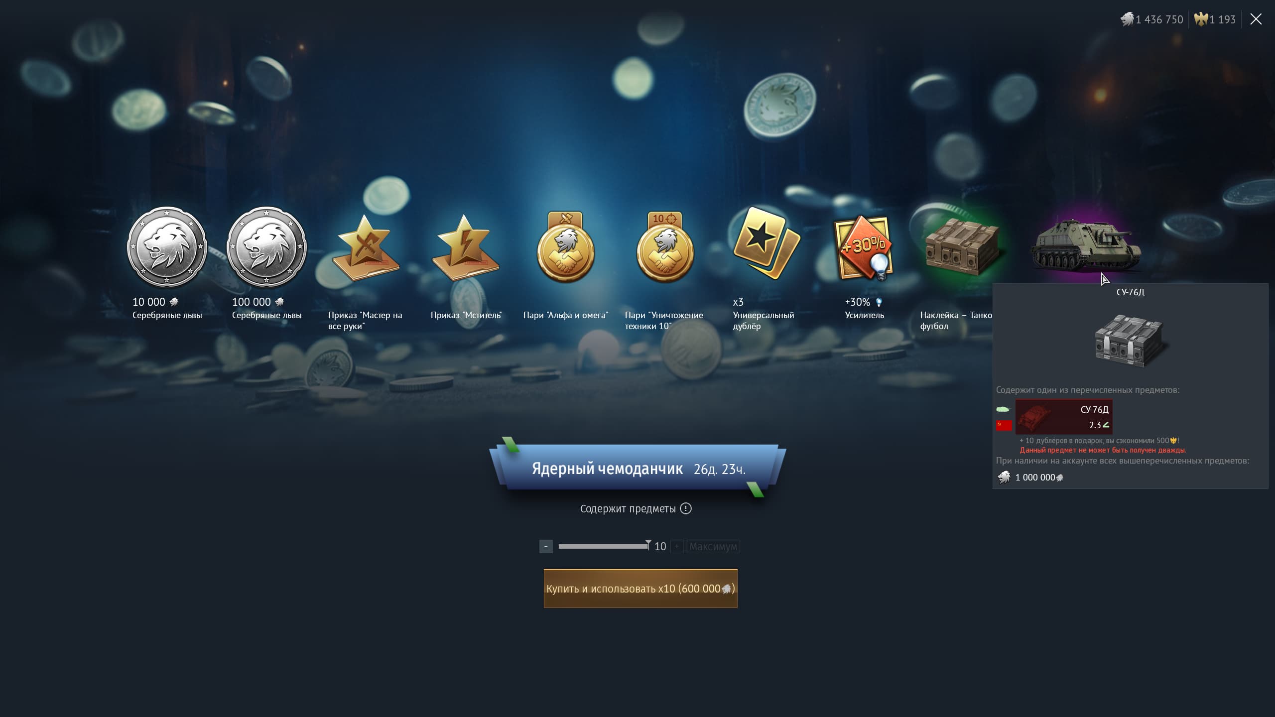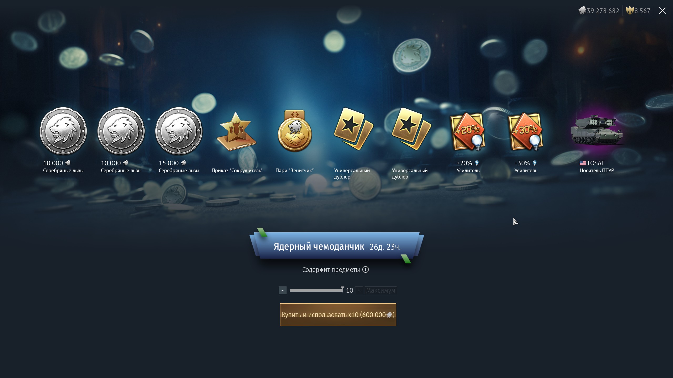 С 9 апреля (14:00 МСК) до 6 мая (14:00 МСК) во внутриигровом Магазине предметов за 60 000 Серебряных львов доступен «Ядерный чемоданчик».