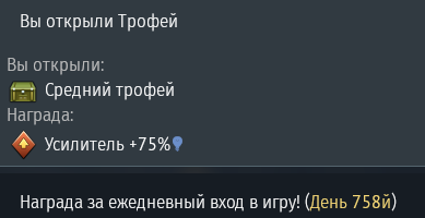 758 дней захожу в игру дали усилок на 75%