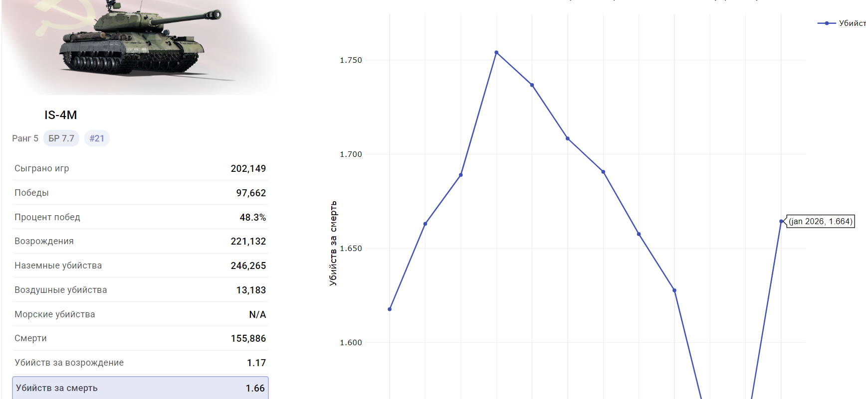 Танку приводов не хватает и кумулятивы угнетают, 21-ый по к/д за январь из 132 машин на ранге, это не отбрасывая недоступные танки с пропуска и Е-100 всякие. Страдает, да.