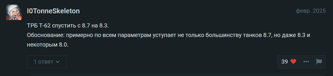 ТРБ Т-62 спустить с 8.7 на 8.3.