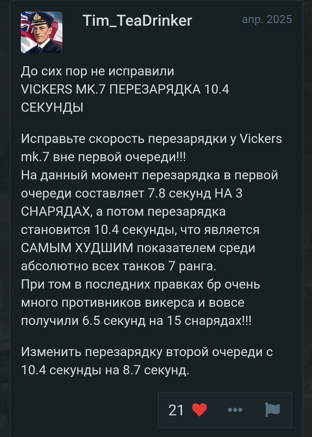 Обоснование — на картонную огромную тушу без стабилизации можно хоть 75-мм пулемет поставить - тут, к сожалению, не танковая игра ВоТ и решает всё качество первого выстрела, а не “ДПМ”. Ок, на 5.0 машина действительно сильна была попадая в топ, но +0.3 за ап выдать можно, но никак не +0.7 что ей впихнули - это не шерман со стабом, что в той же ветке кстать стоит.